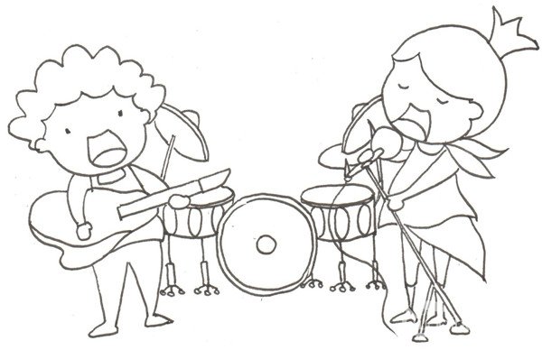 你知道一个乐队是由很多乐手组成的吗?吉他手、贝斯手、鼓手、键盘手、主唱……每个人都有自己独特的本领呢!下面我们就来学习乐队组合儿童画教案步骤图,往下看: