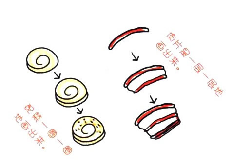 1.画出圆圆的碗,吃拉面一定要大碗的。