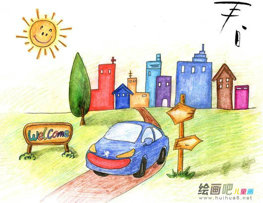 用色时,还要明白,色彩不仅是为了画面更漂亮,更重要的是,色彩可以表达作者的想法和情感。比如,画面上鲜花盛放、到处充满嫩绿,那表达的当然是春天的气息。而表达寒冬自然 就需要用冷的色调,如紫、蓝等。因此,我们要引导学生用色彩来表达自己的感受和想法。并做到根据画的 内容结合自己的想法,色彩运用得当。有时可把色彩画得鲜艳,有时也可以色彩淡雅。哪里可多用色彩,哪里可少用色彩,并注意到色彩可互相衬托对比,创作时,很多时候画面就是靠用合适的色彩,利用色彩之间的衬托表达自己的想法的。大胆处理好色彩的关系,最后还要进行“收拾”整理,完善画面。