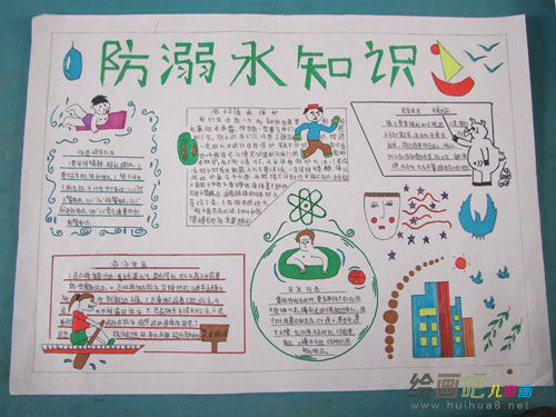 这幅防溺水手抄报制作精美,特别是绘画非常漂亮,对防溺水的知识说明详细,起到很好的宣传效果。